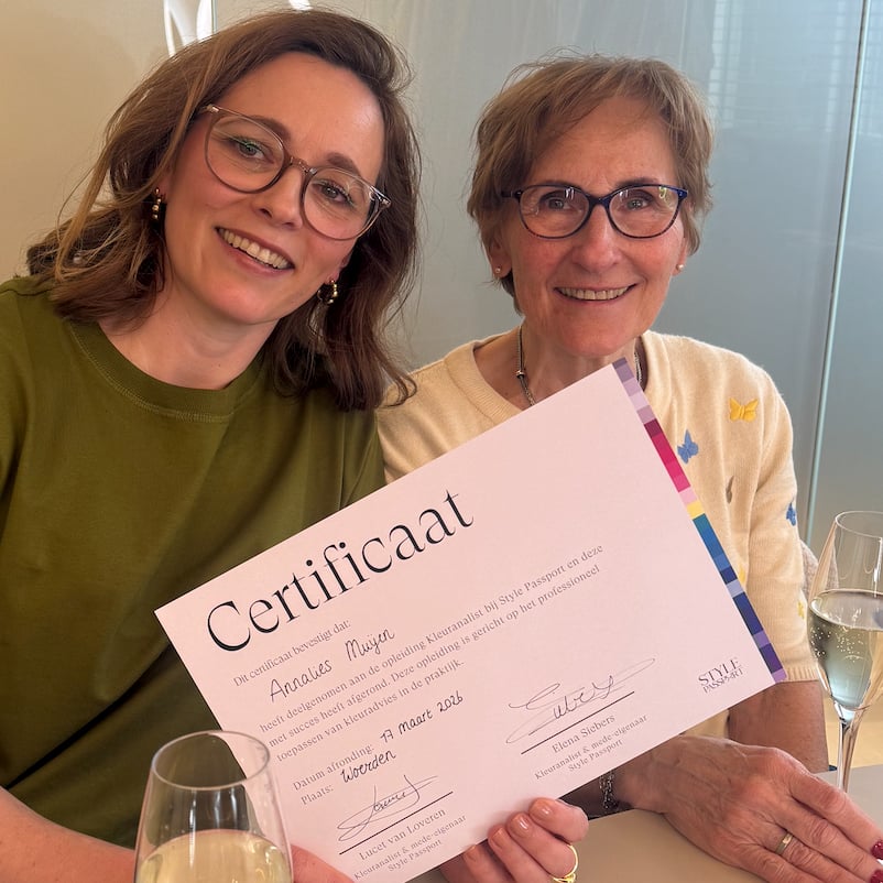 Ik heb met veel plezier de opleiding voor Kleuranalist bij Style Passport gevolgd…en succesvol afgerond. Elena en Lucet zijn betrokken, deskundige docenten waardoor je na 6 weken genoeg kennis en ervaring hebt opgedaan om je eigen bedrijfje op te starten! Het was echt een hele goede keuze, deze sprong in het diepe voor mij. Dankzij Style Passport vooral 💖