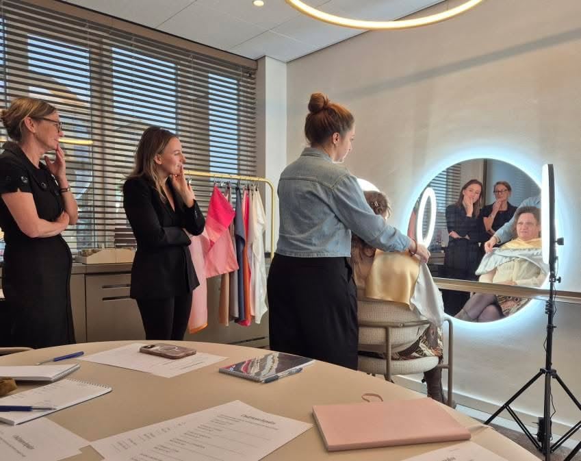We combineren onze krachten: kleuradvies, technische modekennis, persoonlijke styling en ondernemersinzicht.